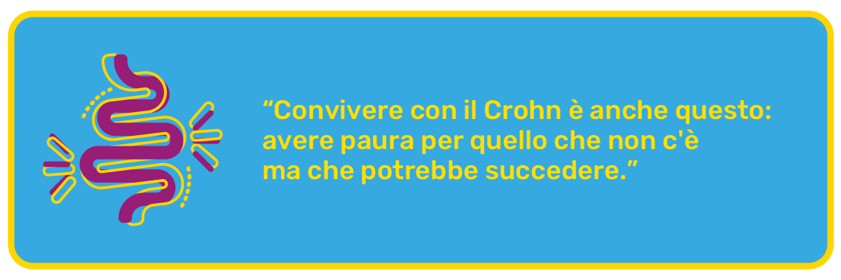 Durante tutti questi anni, l’episodio che più mi ha segnato è stata la resezione intestinale a livello dell'ileo: è successo dopo un brutto blocco intestinale ed è stato dolorosissimo. Così, anche se tutto oggi va più o meno bene, sono spaventata alla sola idea che qualcosa di simile possa ripresentarsi nella mia vita e sconvolgere tutto.