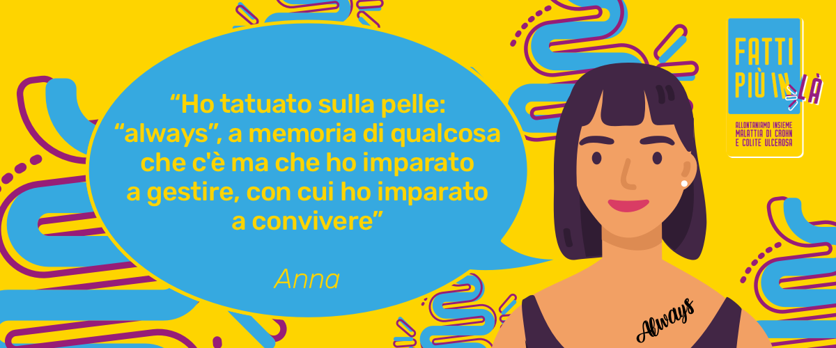 Sono consapevole che la colite ulcerosa farà sempre parte di me, ma non le darò modo di cambiare la mia vita. Quel “sempre” me lo sono perfino tatuato sulla pelle: “always”, a memoria di qualcosa che c'è ma che ho imparato a gestire, con cui ho imparato a convivere. Va, viene, si sveglia, si riaddormenta: il mio fidanzato l'ha soprannominata “il procione”, perché la colite ulcerosa somiglia a un piccolo animale che raschia via qualcosa, ma se lo accarezzi torna a dormire.