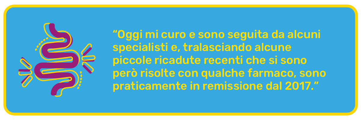 Così mi sono ritrovata in mezzo a questo calvario che ero solo adolescente. E con fatica ho dovuto anche prendere familiarità con visite mediche e farmaci, all'inizio curando, per almeno tre anni, solo gli aspetti neurologici del mio malessere. In realtà la malattia era solo “nascosta”. Fino al 2011, quando l’ho finalmente conosciuta per nome, grazie a una diagnosi certa che ha chiuso il quadro clinico. Oggi mi curo e sono seguita da alcuni specialisti e, tralasciando alcune piccole ricadute recenti che si sono però risolte con qualche farmaco, sono praticamente in remissione dal 2017.