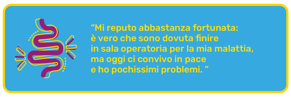 Così ho cominciato a girare qua e là, su e giù per la mia regione, il Piemonte, cercando di capire come affrontare questa condizione di malata del tutto nuova per me. Il chirurgo allora fu abbastanza illuminato: alla seconda visita mi indirizzò da un gastroenterologo, in una città diversa dalla mia, dove cominciai delle cure che purtroppo non furono abbastanza efficaci. Poco dopo cambiai specialista e anche centro di riferimento. In questa nuova struttura incontrai finalmente il medico che faceva al caso mio. Seguiva migliaia di pazienti, ma riusciva sempre a trovare uno spazio anche per me. Ho iniziato una nuova cura, e nel giro di tre mesi sono migliorata: stavo bene, e oggi mi limito a fare una visita di controllo ogni anno.