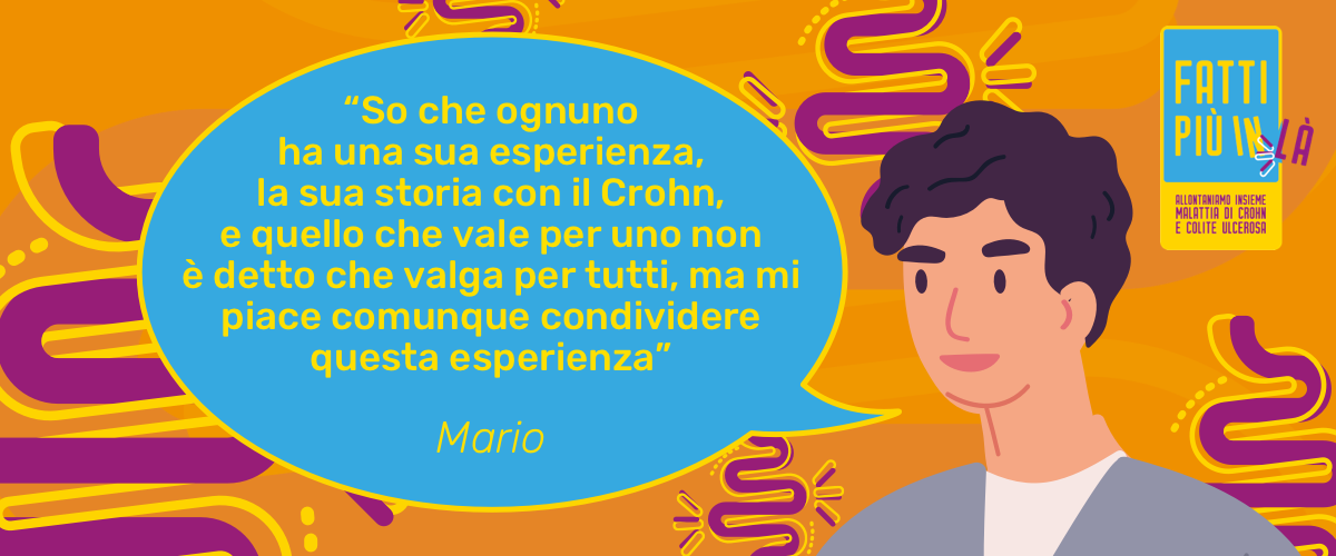 Certo, anche io posso fare qualcosa, anche se lei non se ne andrà mai: guardandomi indietro mi sono fatto l'idea che molto probabilmente quando la malattia galoppa non lo fa a caso. Le riacutizzazioni sono sempre comparse durante periodi di forte stress psichico. È per questo che ora, anche grazie all'aiuto di mia moglie, sto cercando di lavorare molto su questo aspetto. Poi certo, devo curarmi. Ho iniziato praticamente subito una terapia che mi ha dato la speranza di vivere meglio. So che ognuno ha una sua esperienza, la sua storia con il Crohn, e quello che vale per uno non è detto che valga per tutti, ma mi piace comunque condividere questa esperienza con chi si è ritrovato in una situazione simile alla mia.