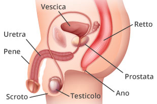 La prostata è un organo fibromuscolare e ghiandolare delle dimensioni di una noce e del peso di circa 30 grammi, parte del sistema riproduttivo maschile. È collocata tra il pene e la vescica, proprio di fronte al retto. L’uretra passa al centro della prostata e collega la vescica al pene, per permettere la fuoriuscita dell’urina.
